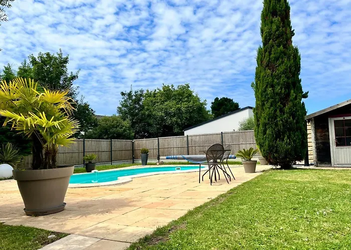 Willa Le Logis de La Baule - Maison climatisée piscine dysponuje tarasem z widokiem na ogród oraz krytym basenem.